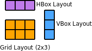 • QGridLayout: Donde los elementos se colocan en una tabla (con 'x' e 'y').