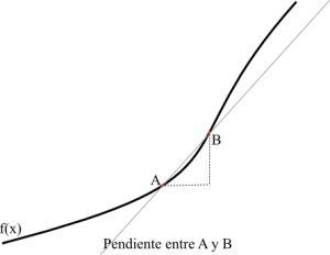El valor de la derivada de una función en un punto es la pendiente de la tangente de la función en ese punto.