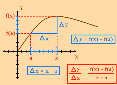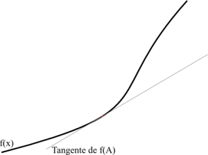 Cuando acercamos B a A nos quedamos quedamos con la tangente en el punto A. Y lo expresamos como el cociente del incremento de y entre el de x: △y/△x o lo que es lo mismo, la derivada: dy/dx