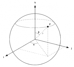 Las coordenadas x, y, z de un sistema cartesiano, se representan en un sistema esférico mediante r, ,