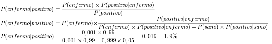 La probabilidad de tener una enfermedad rara es de 0,001: P(enfermo) = 0,001